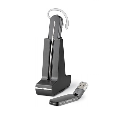 Das schnurlose DECT-Headset-System Savi 440 von Plantronics ist ideal für die Nutzung mit dem PC-Softphone. Praktisch: Dank des austauschbaren Akkus bietet es unbegrenzte Sprechzeit. Der im Lieferumfang enthaltene USB-DECT-Adapter ermöglicht einfaches Plug & Play, und lässt sich während der Nutzung um 180 Grad einklappen. DECT-Technologie und Wideband-Audio ermöglichen eine klare, natörliche Klangqualität und optimale Sprachverständlichkeit. Das Noise Cancelling-Mikrofon filtert Hintergrundgeräusche heraus und sorgt so für eine störungsfreie Sprachübertragung, auch in lauten Umgebungen. Das konvertible Headset ist mit 22g besonders leicht und kann in drei Varianten getragen werden: Mit Kopfbügel, Ohrbügel oder Hinter-Kopf-Bügel.